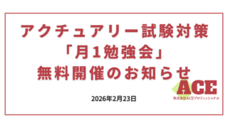 アクチュアリー試験対策「月1勉強会」無料開催のお知らせ アクチュアリー試験受験生を対象に、オンライン「月1勉強会」を無料開催します。定期テストと解説を通じて継続的な学習機会を提供します。 2026.02.23